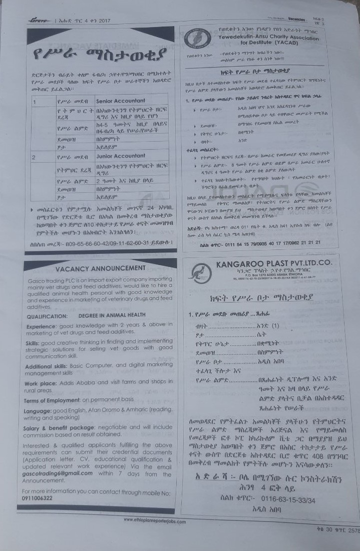 Workplace Location: Addis Ababa, Ethiopia