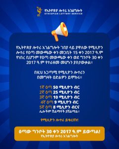 The National Lottery announced that a lucky winner of 16 million birr has been lost.