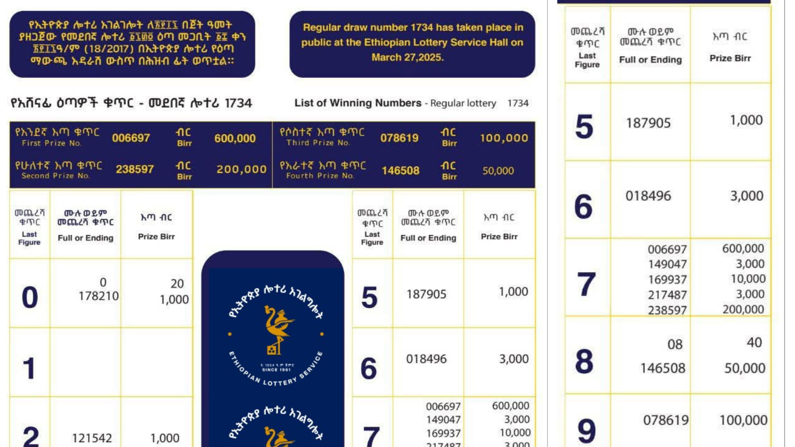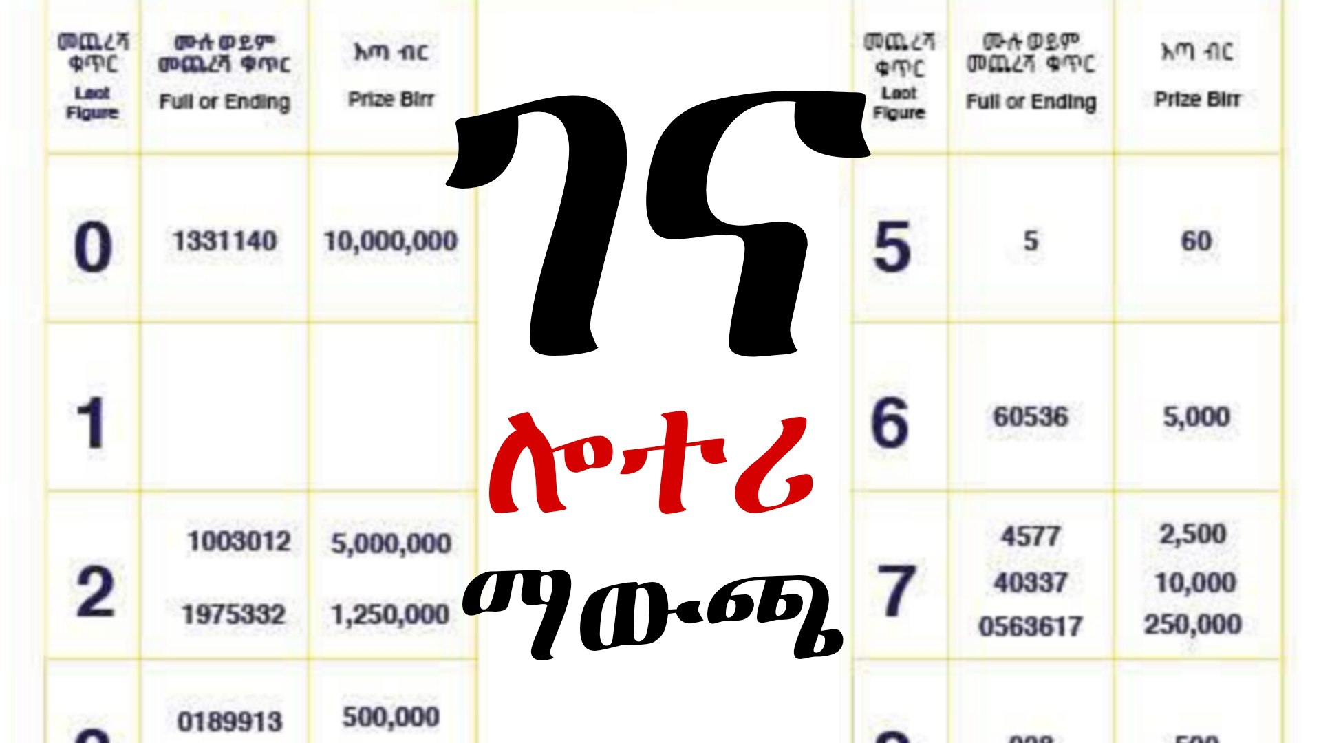 National Lottery Ethiopia 2017 Winning Numbers Today